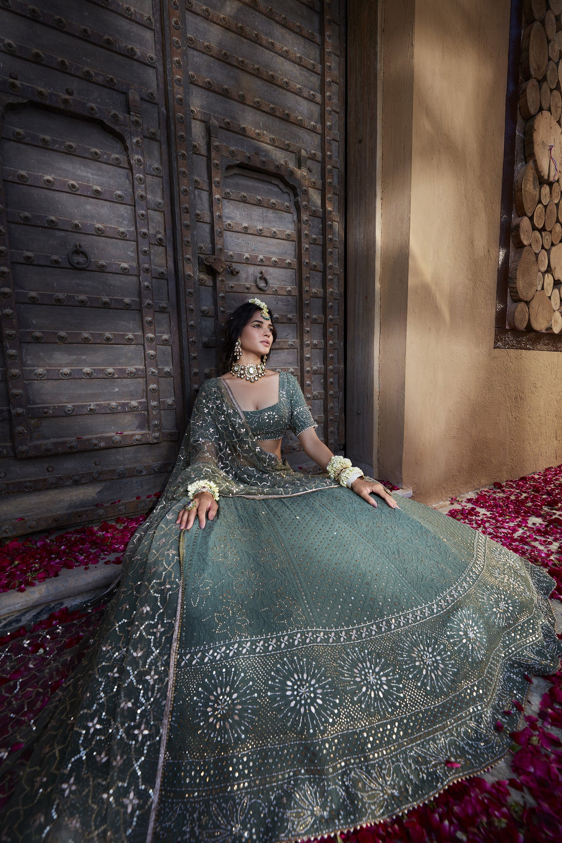 Lehenga: For Diwali, lehengas adorned with flowing skirts featuring mirror work, sequins, or exquisite floral embroidery are reigning supreme this season. When paired with a chic blouse and an elegant dupatta, they create a picture-perfect festive ensemble.