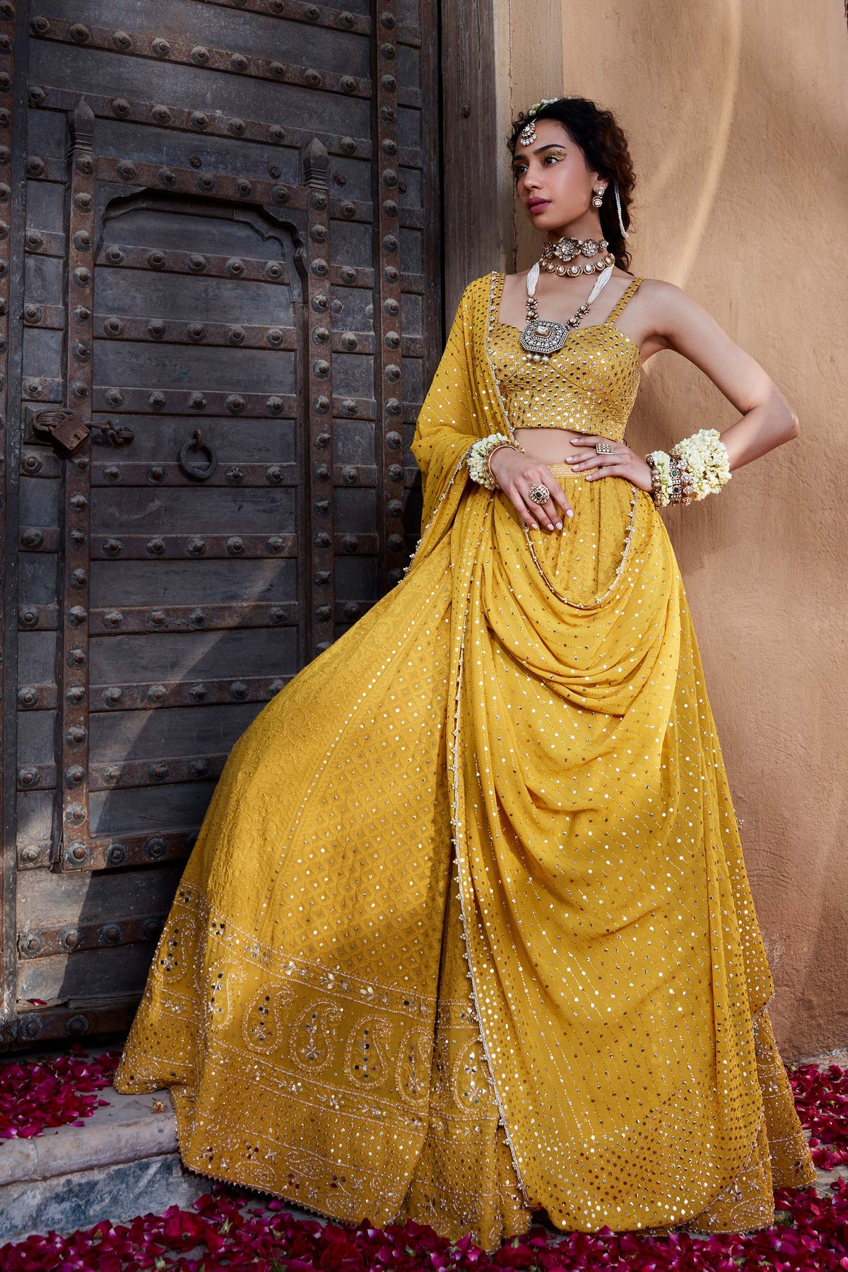 Vibrant Yellow Chikankari Lehenga for a Joyous Wedding Celebration