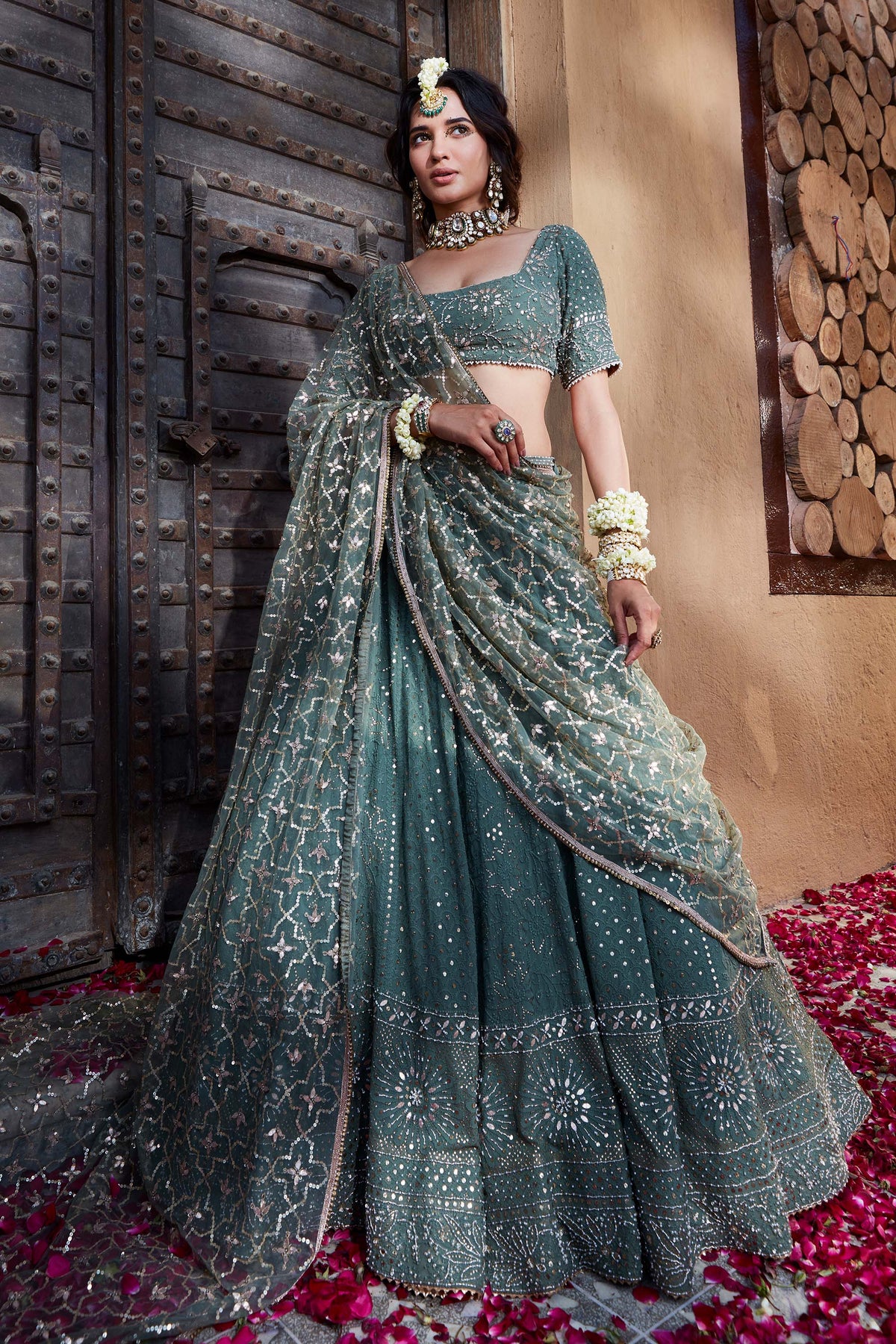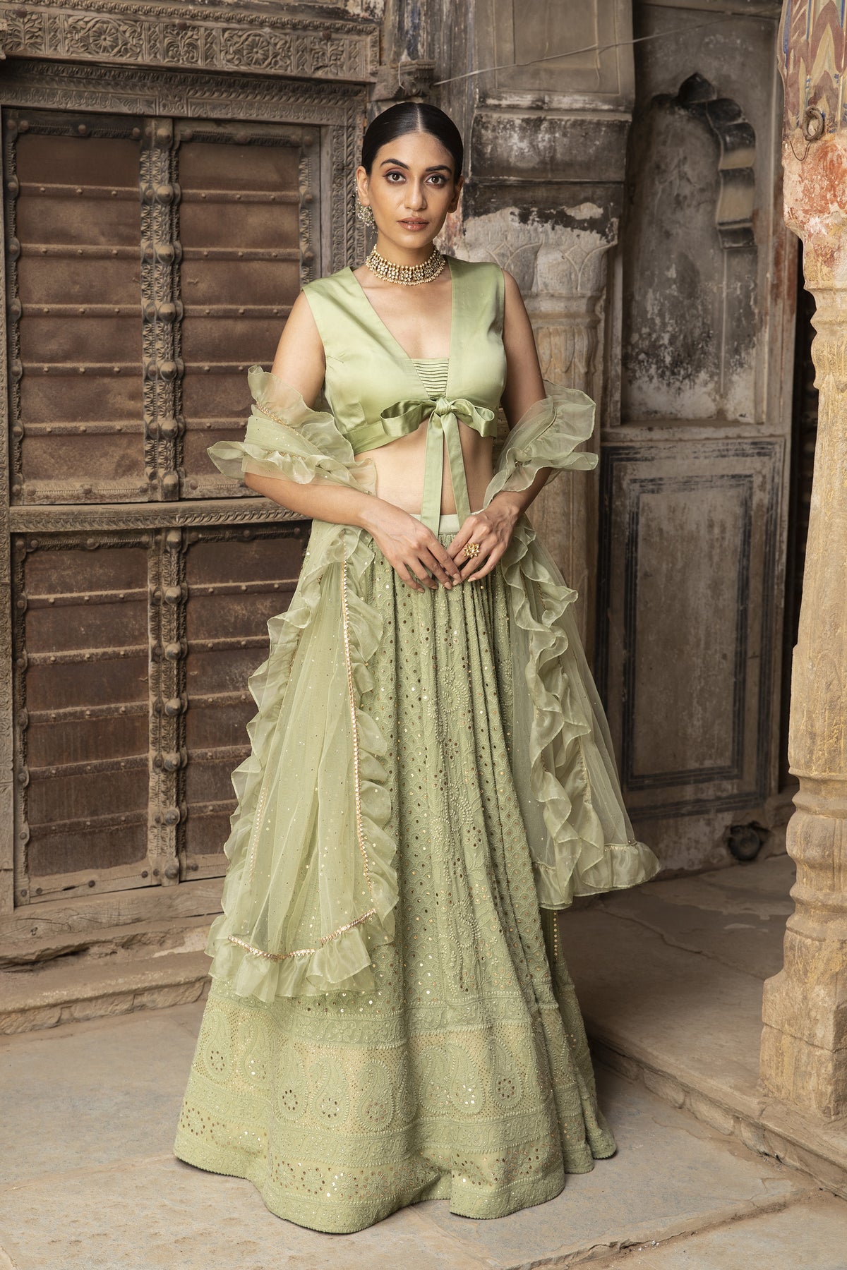 Sage Green Chikankari Lehenga for a Unique Bridal Appearance