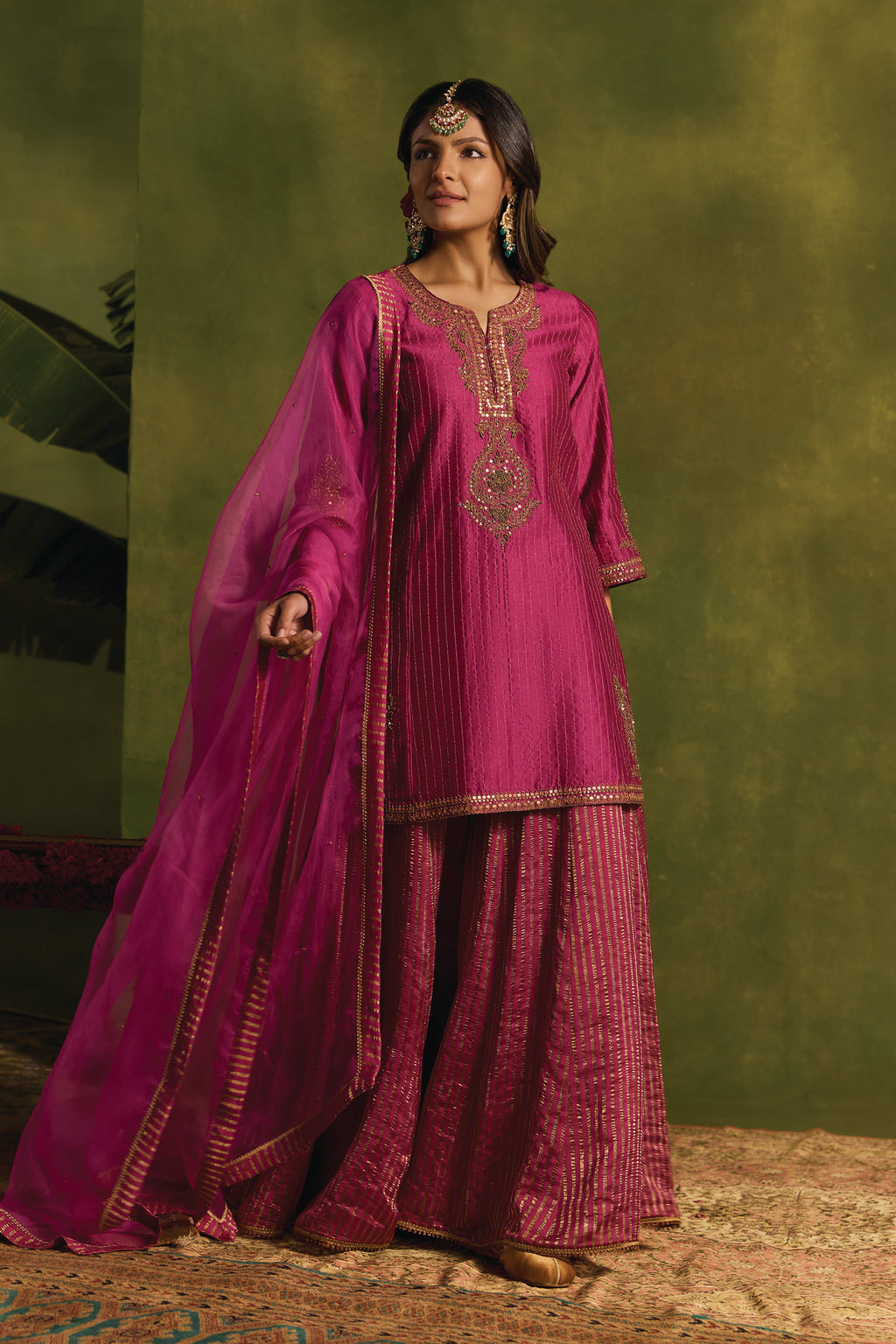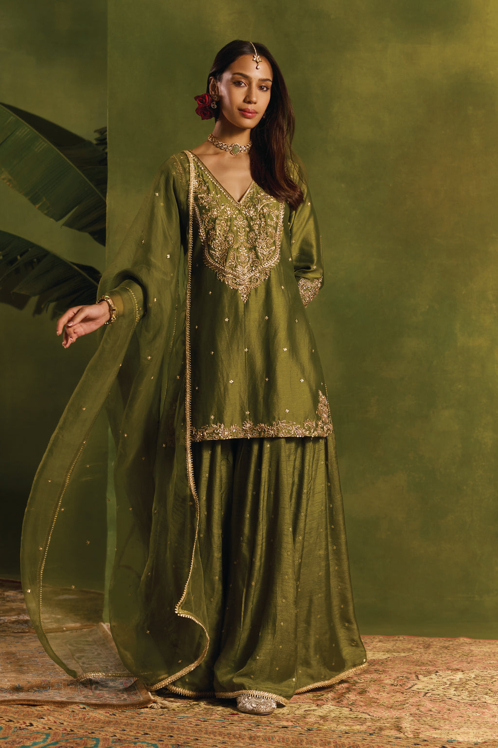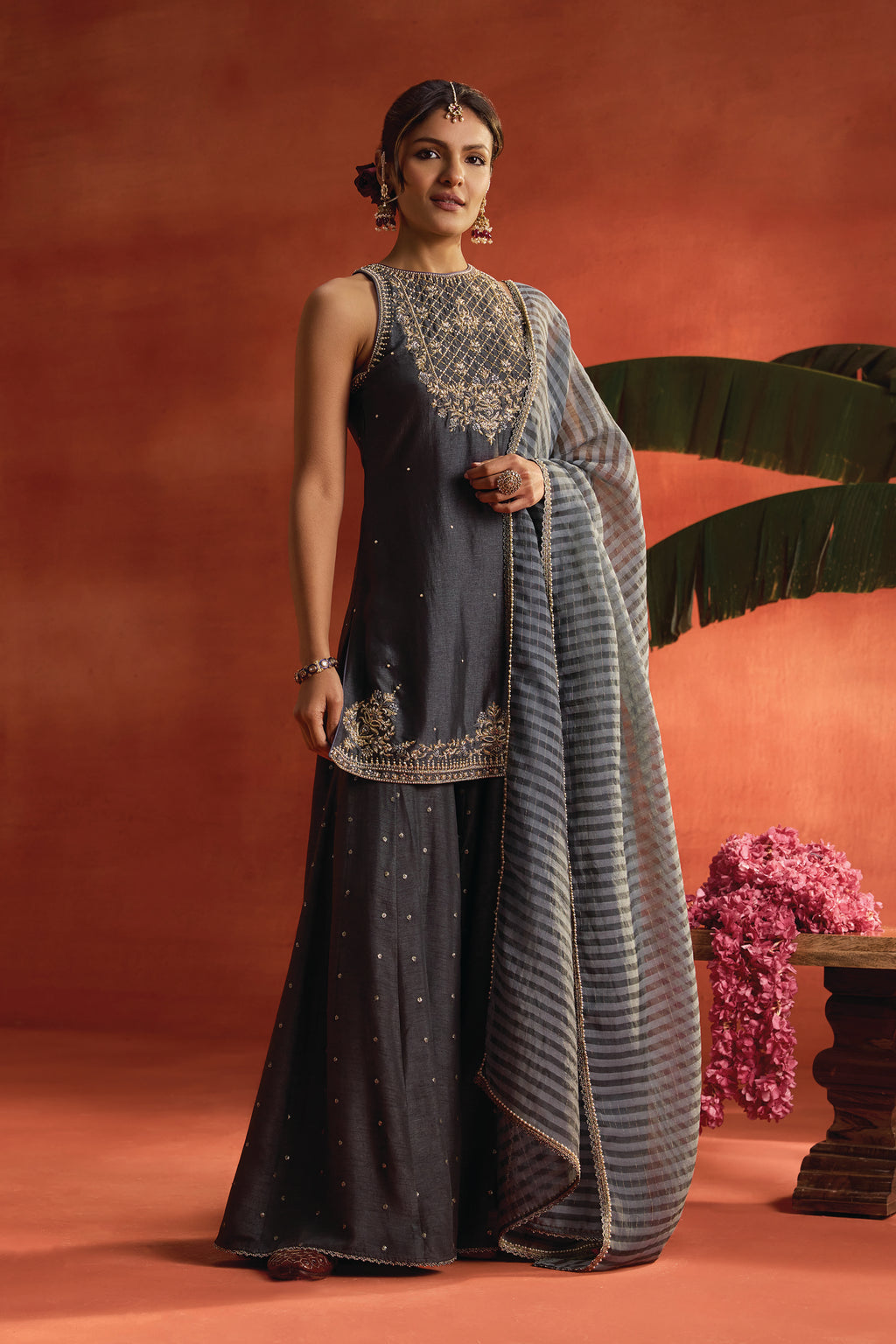 The Zubeida sharara set carries a slightly more dressed-up feel while still being easy to wear. It works well when the day moves into evening, offering a refined look without feeling heavy.