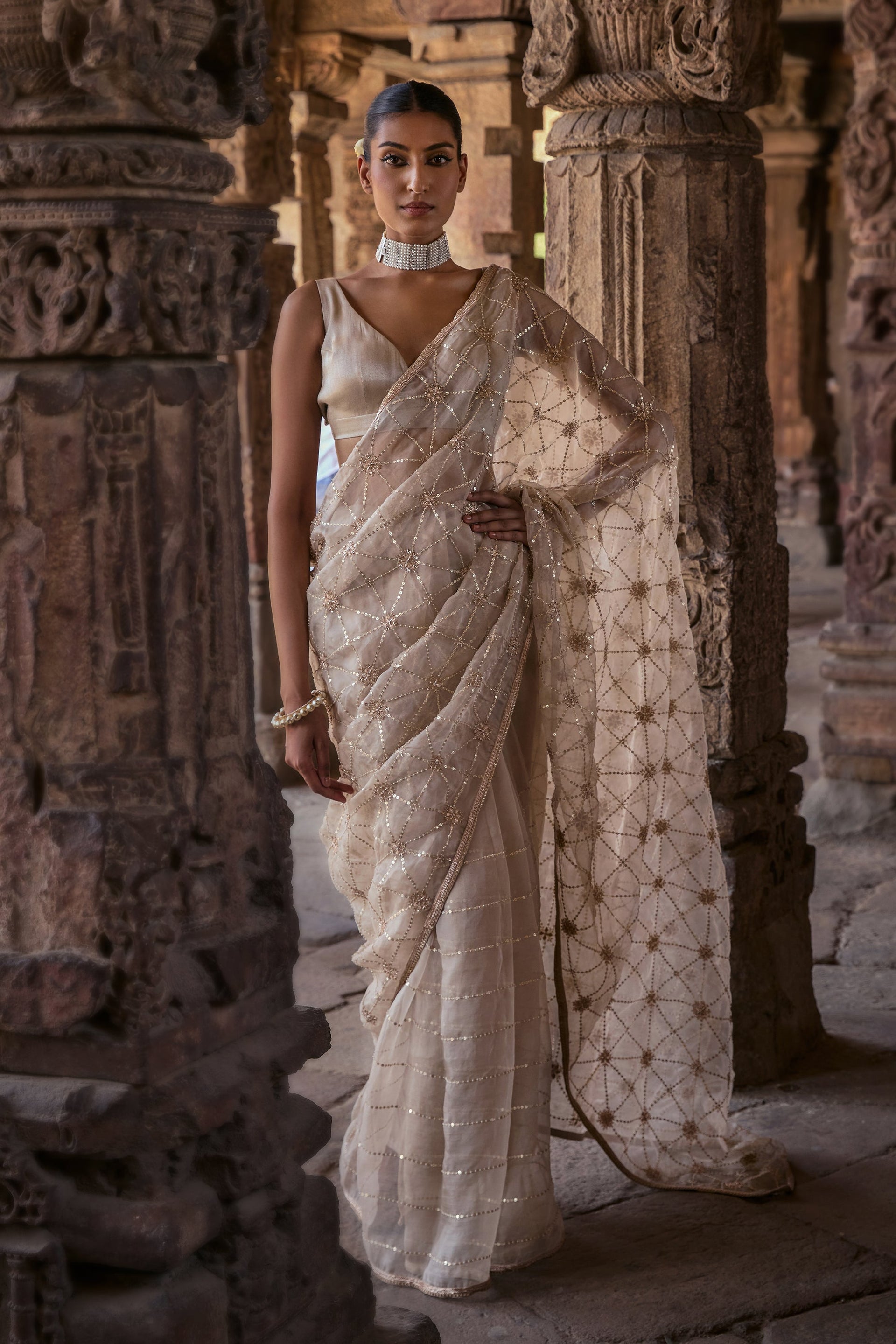 This version of Mariam is designed for women who value subtle artistry in their festive wear. It has a delicate finish that is sophisticated yet light, making it perfect for an office Diwali event. Its graceful design allows it to transition easily from professional hours to evening celebrations. This saree is for those who prefer timeless elegance over heavy embellishments.