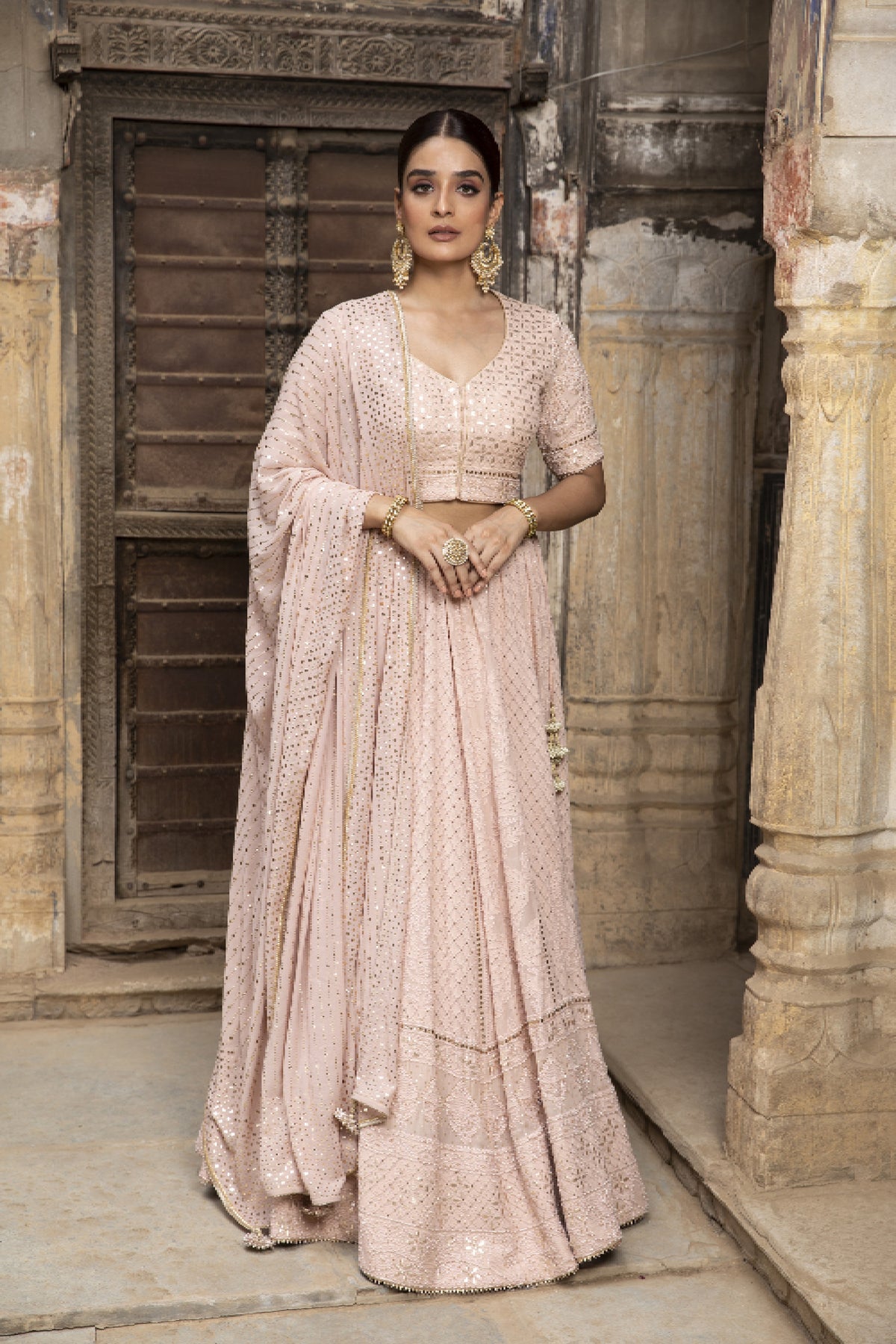 Pink Embroidered Lehenga Set