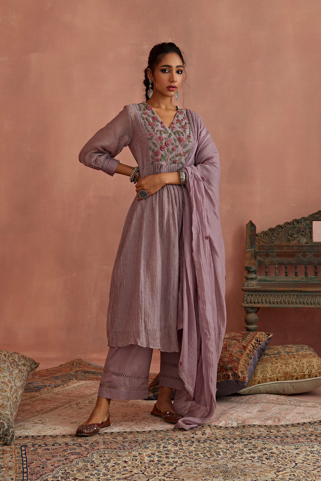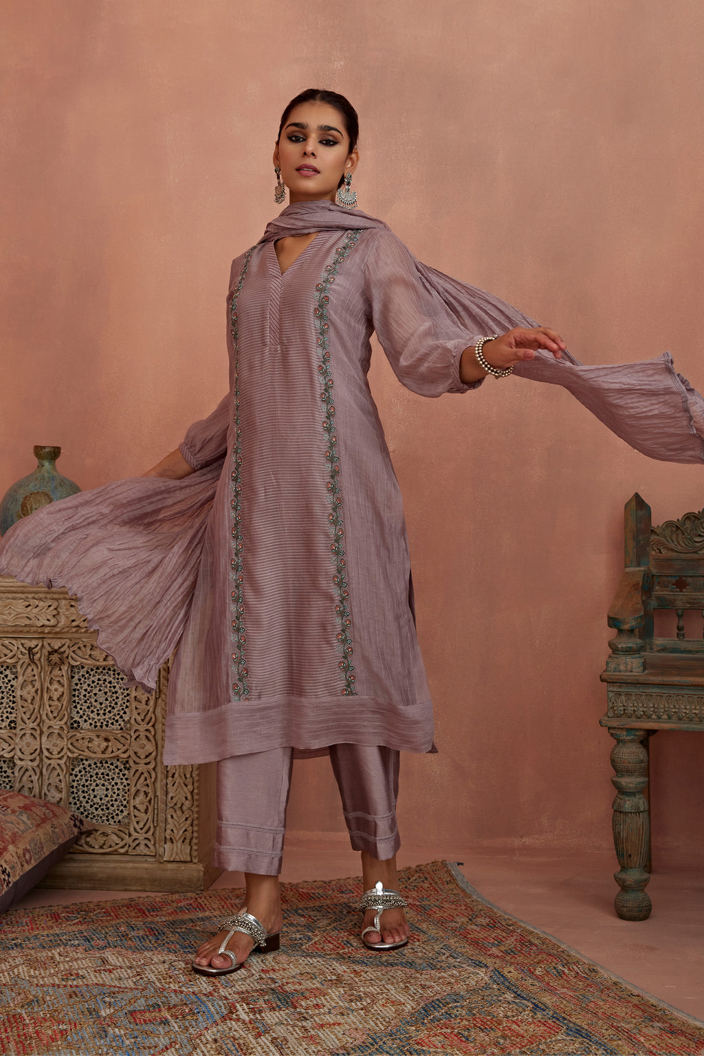 Day 3: Mauve 3-D Flower Embroidery Kurta Set