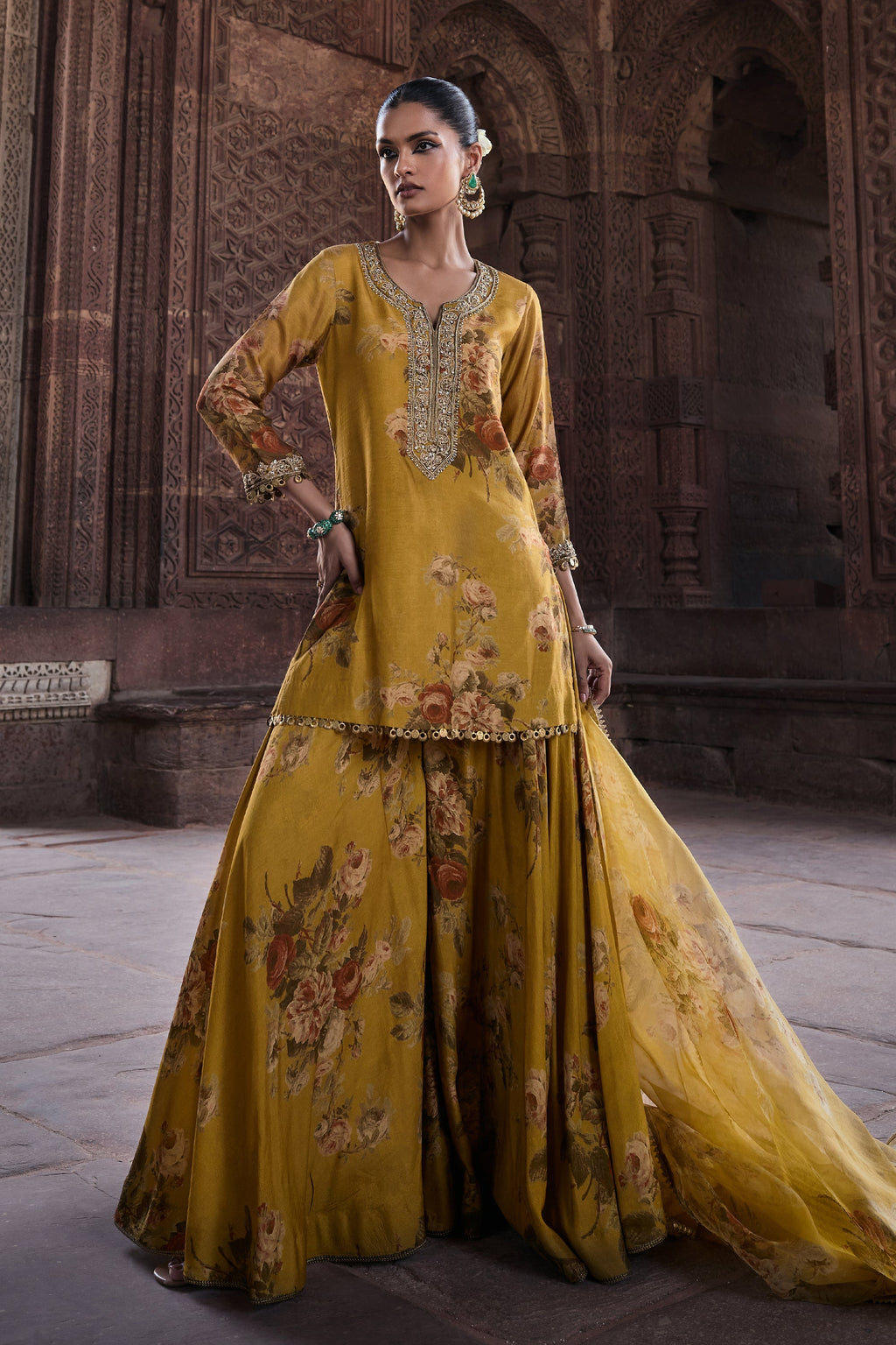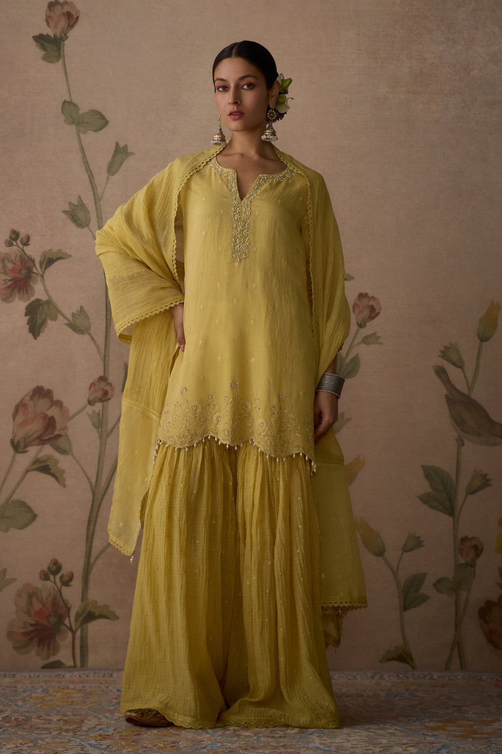 Day 4: Lemon Yellow Scalloped Short Kurta Gharara Set